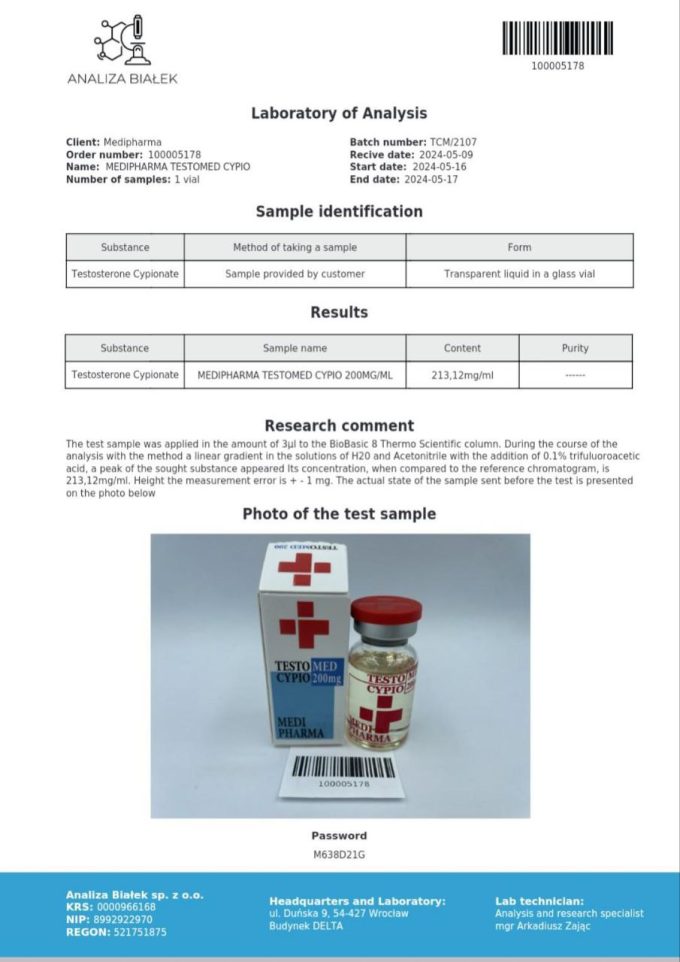 Global Pharma Testobal-C 250mg Testosteron Cypionate basiert auf dem Ester Testosteron Cypionat, der für seine verlängerte Wirkungsdauer bekannt ist. Daher ist dieses Produkt besonders beliebt innerhalb der Kategorie injizierbare anabole Steroide. Der Ester wird seit vielen Jahren wissenschaftlich untersucht und dokumentiert.