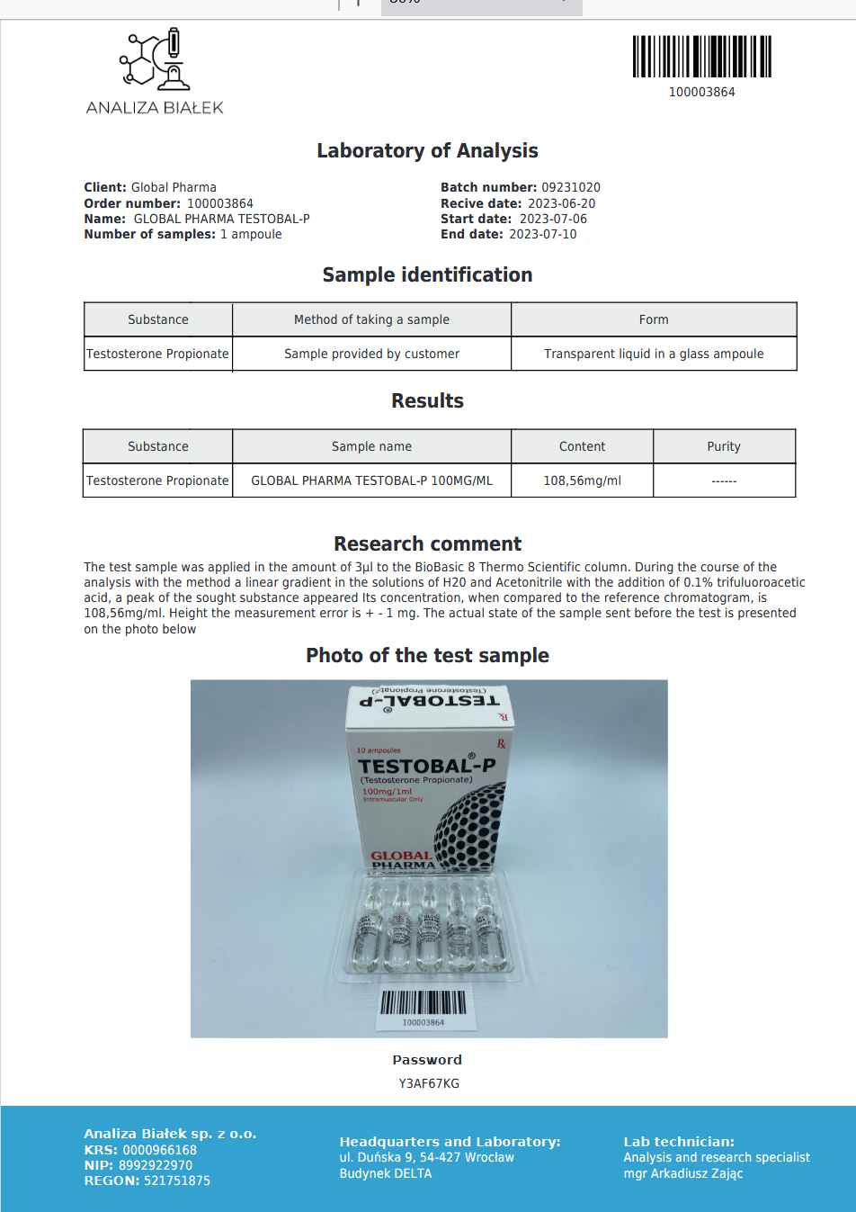 Global Pharma Testobal-P 100mg Testosteron Propionat ist ausschließlich für Forschungs- und Bildungszwecke bestimmt. Es ist nicht zur Einnahme oder Anwendung am Menschen vorgesehen. Lagern Sie das Produkt kühl, trocken und außerhalb der Reichweite Unbefugter.